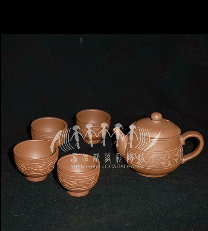 仰韶紅泥手工雕刻茶具